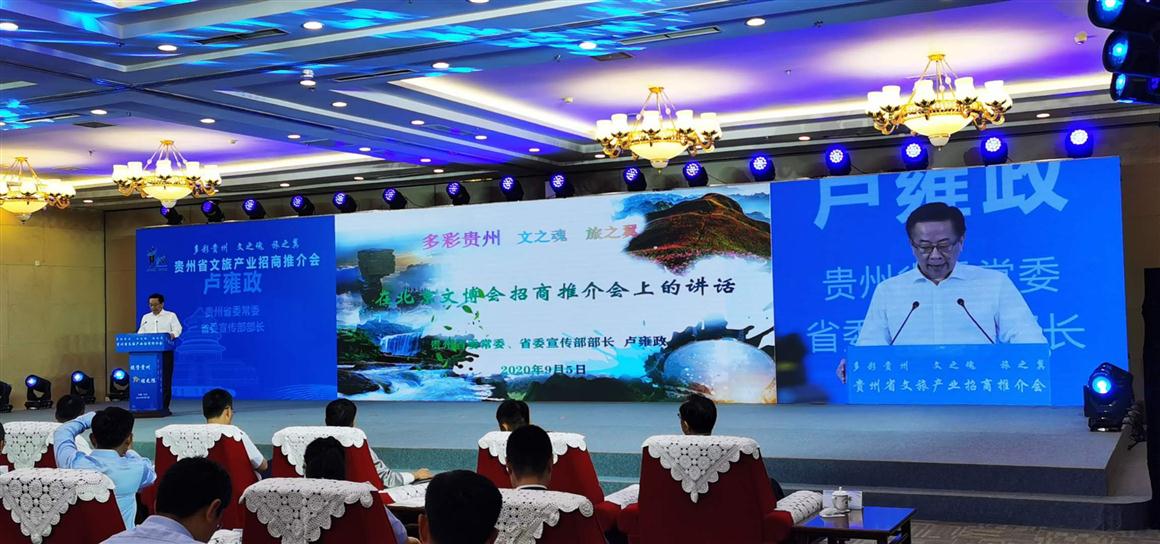 丹楓迎秋,金桂飄香。9月5日下午3:00—4:30,“文之魂·旅之翼”第十五屆中國國際文化產(chǎn)業(yè)博覽會貴州招商推介會在京舉行。出席推介會的領導有:貴州省省委常委、宣傳部部長盧雍政,貴州省人民政府副省長譚炯,北京市國有文化資產(chǎn)管理中心副主任趙恩國,北京市文化和旅游局一級巡視員史安平,貴州省人民政府副秘書長張焱,貴州省委網(wǎng)信辦、省文化和旅游廳、貴州省政府駐北京辦事處主要負責人。推介會由貴州省產(chǎn)業(yè)大招商工作領導小組辦公室主任、貴州省投資促進局局長馬雷主持。