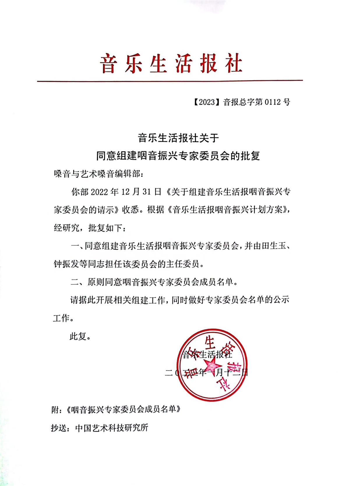 音樂生活報社關(guān)于同意組建咽音振興專家委員會的批復(fù)