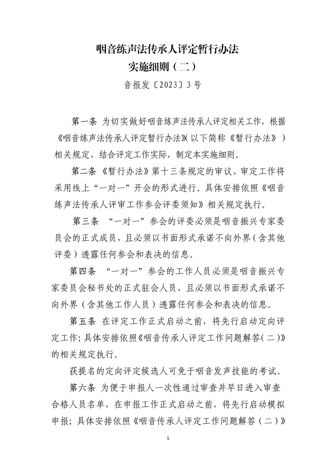 咽音練聲法傳承人評(píng)定暫行辦法實(shí)施細(xì)則(二)正式發(fā)布