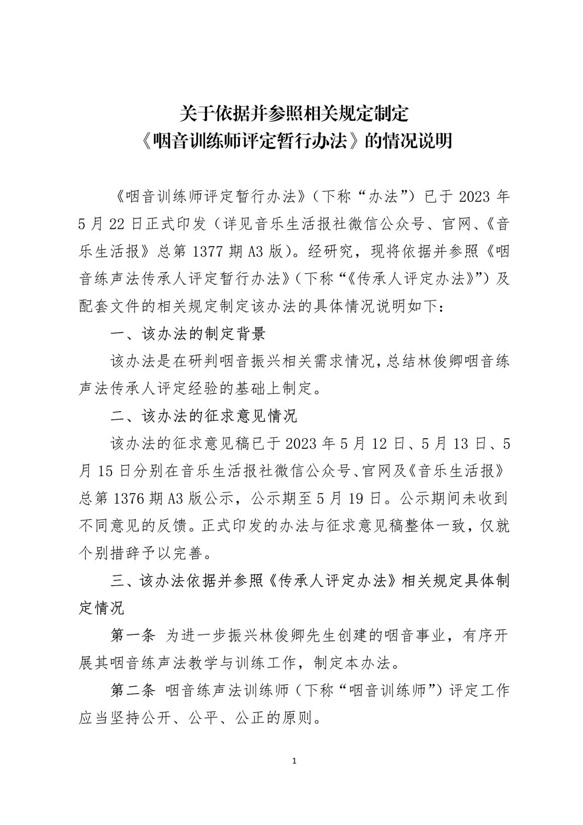 關(guān)于依據(jù)并參照相關(guān)規(guī)定制定《咽音訓(xùn)練師評(píng)定暫行辦法》的情況說(shuō)明
