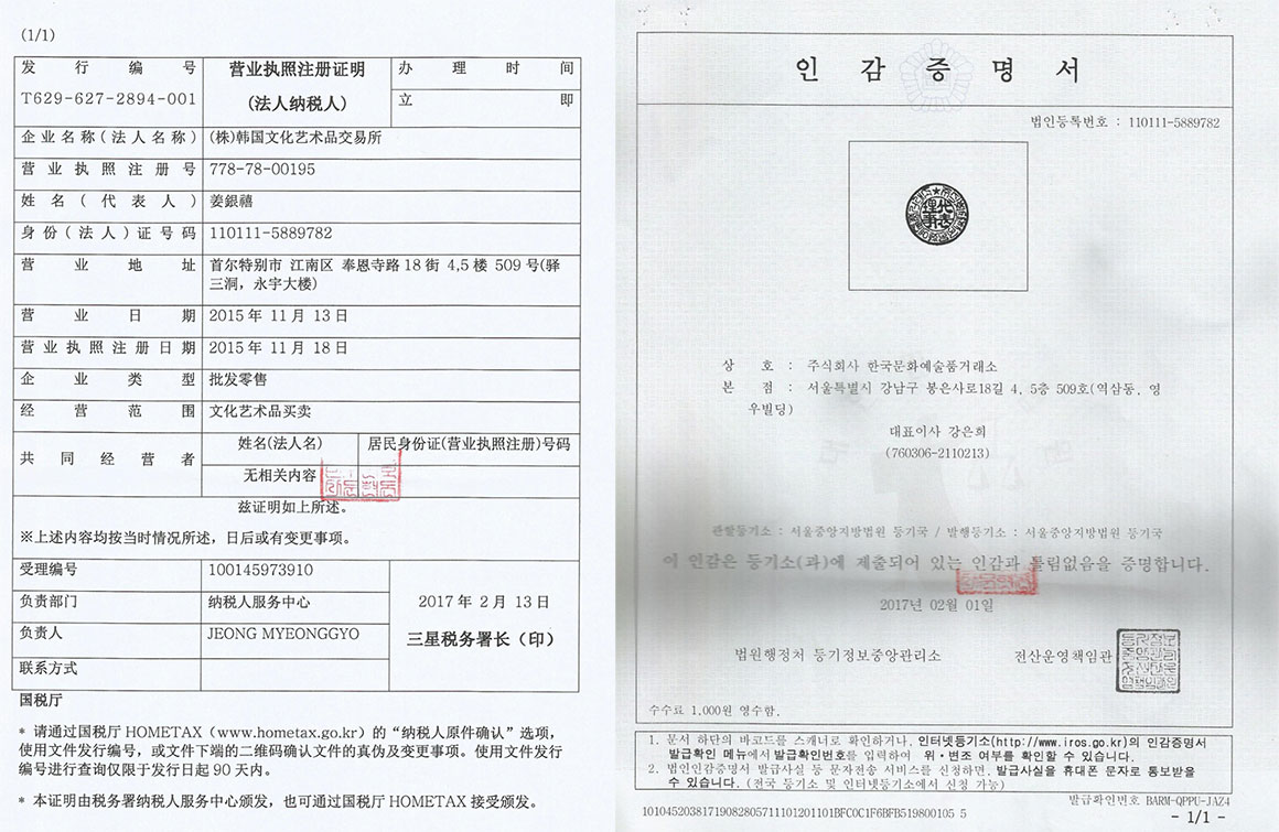 韓國文化藝術(shù)品交易所于2015年11月13日成立, 主要經(jīng)營范圍:文化藝術(shù)品交易(郵票,貨幣,美術(shù)品等)、文化藝術(shù)品進出口(郵票,貨幣,美術(shù)品等)、電子商交易、網(wǎng)路購物網(wǎng)站、移動App開發(fā)、娛樂產(chǎn)業(yè)、海外觀光業(yè)、海外投資及眾籌、房地產(chǎn)開發(fā)、有關(guān)服務(wù)行業(yè)、有關(guān)批發(fā)零售、有關(guān)進出口業(yè)務(wù)、有關(guān)附帶事業(yè)等。